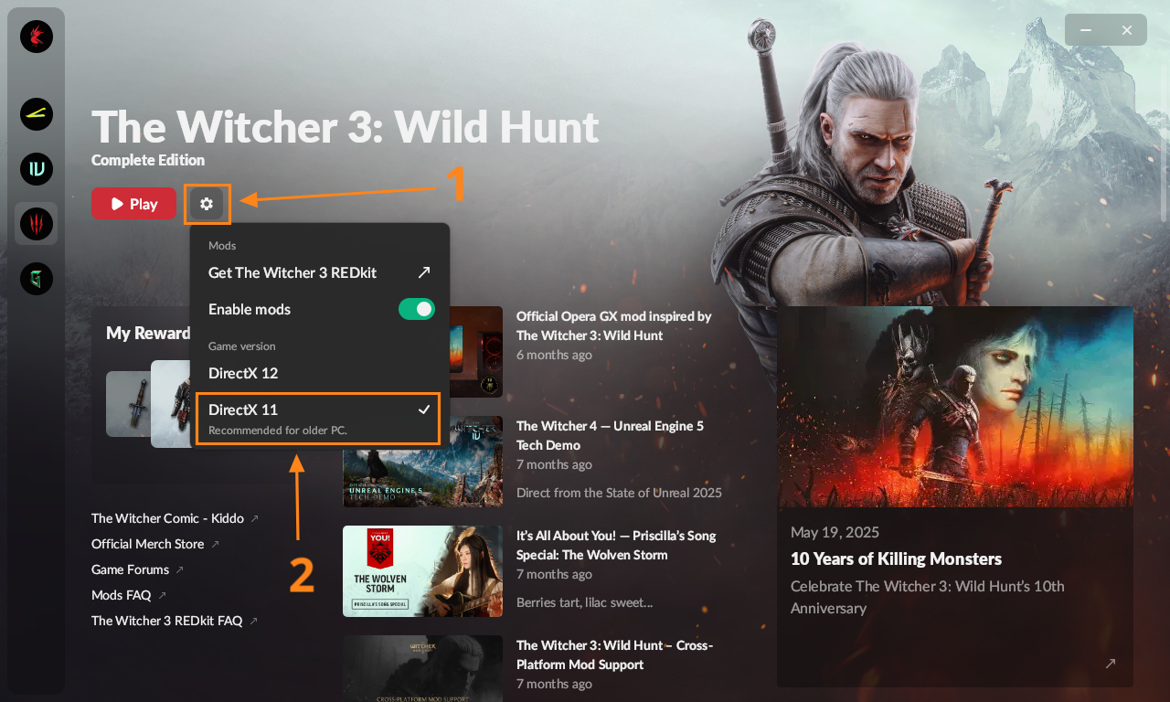 Now click play and wait for the game launcher to open. Select the gear icon in the launcher ad choose either DX11 or DX12.