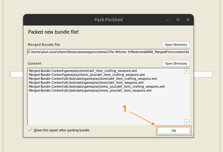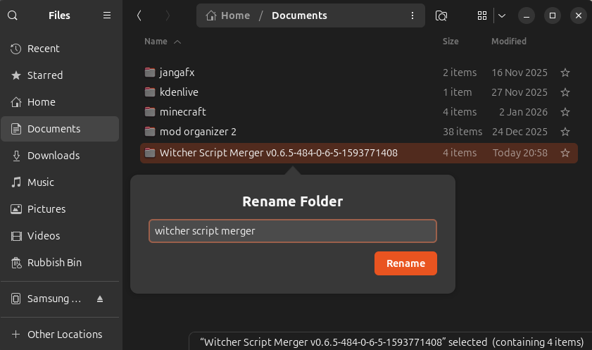I moved the folder to the documents directory on my system and renamed it to 'witcher script merger'.