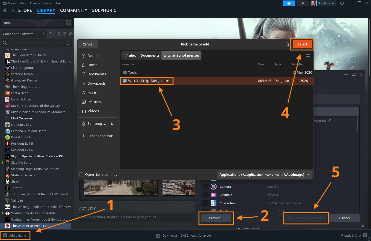 Select browse in the new window that opens and locate the WitcherScriptMerger.exe file you just saved on your system, Select it and then click the 'add selected programs' button once it turns blue.